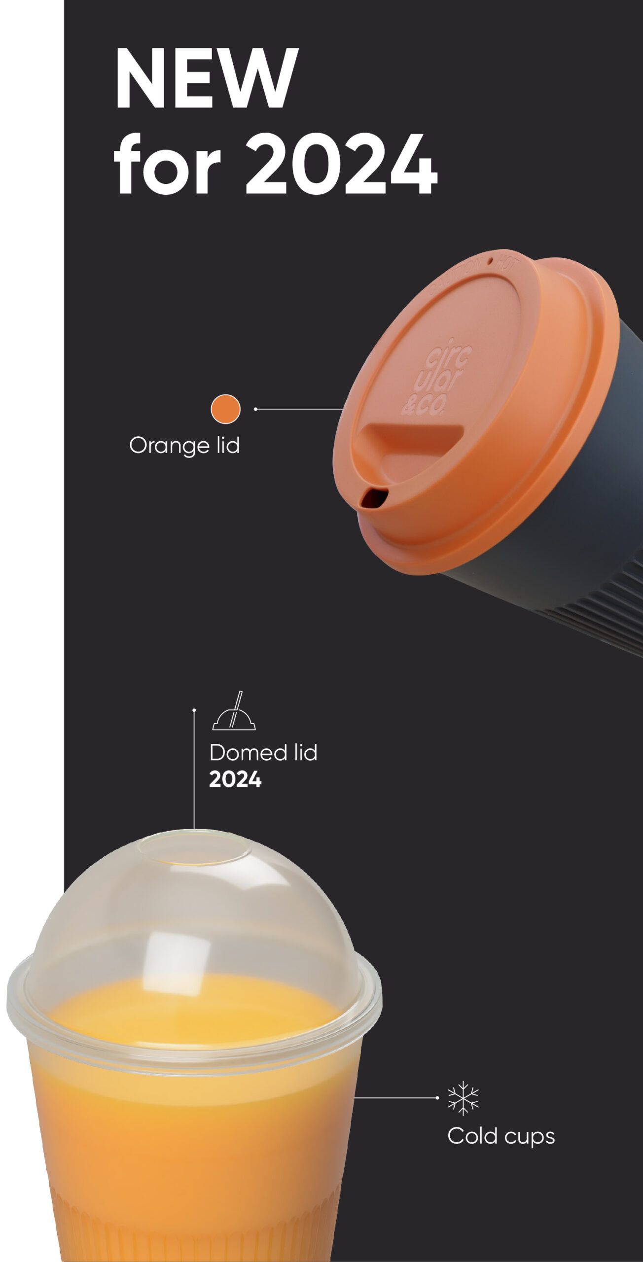 Our pioneering range of Returnable Cups come off-the-shelf in grey, chalk and frosted. 2024 sees the introduction of our new stand-out orange lid as well as the purposefully designed cold cup with domed lid.